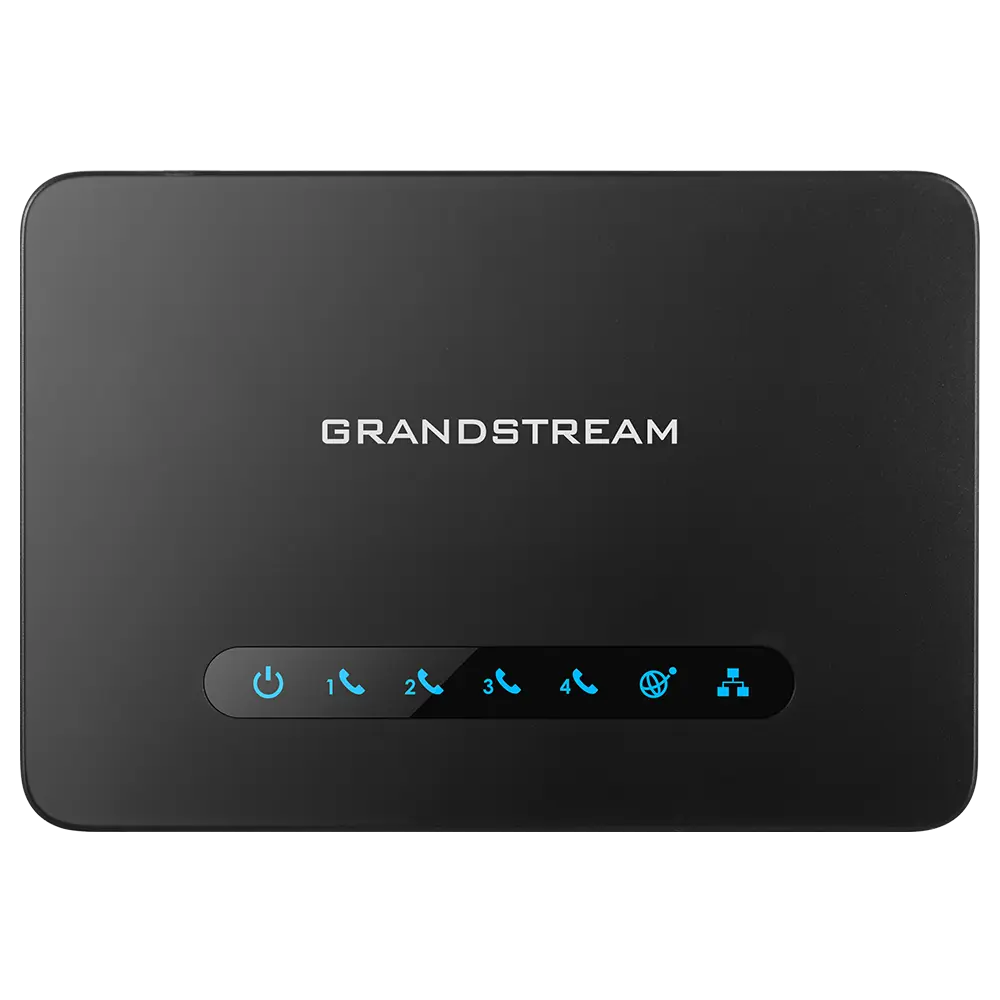 4-port FXS ATA · Gigabit · NAT router. Same as HT812 with 4 analog ports for larger offices.