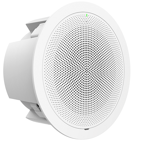 15W in-ceiling speaker · 2-way voice · 3 directional mics · SIP & multicast. Premium intercom/paging speaker with talk-back capability.